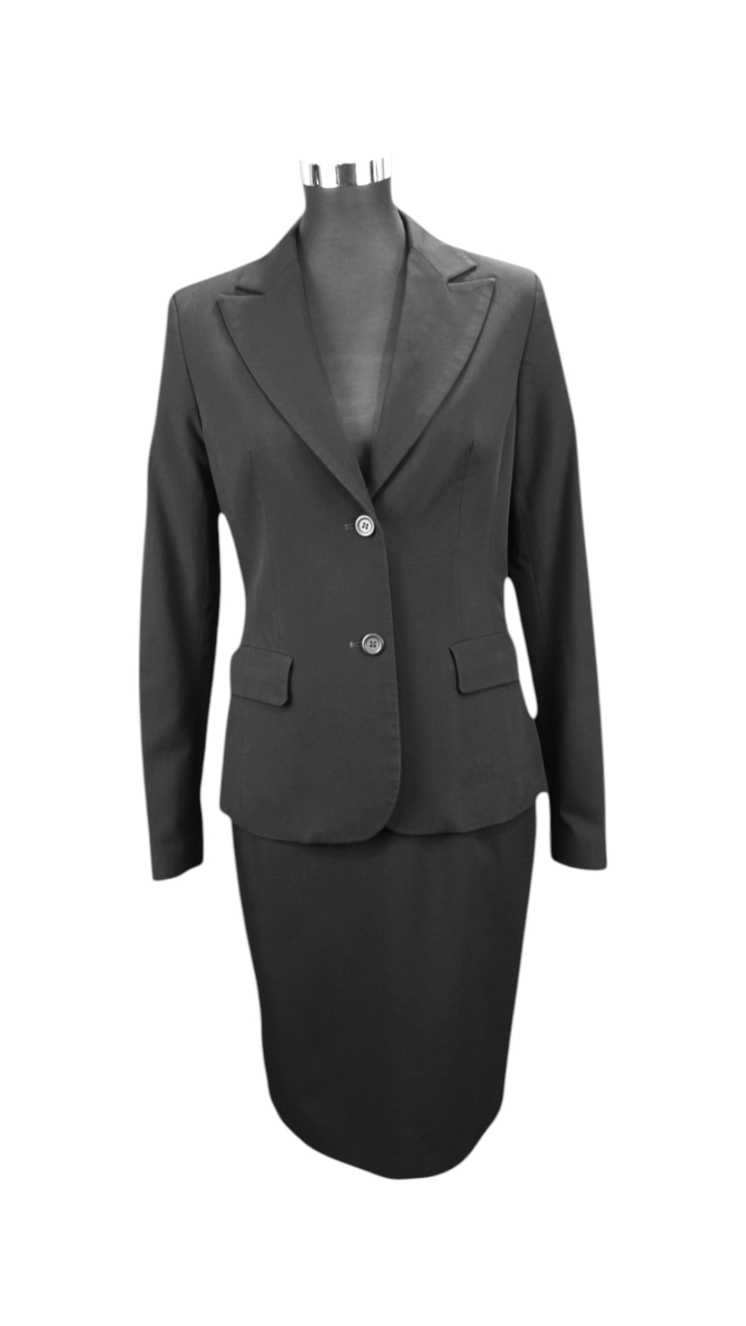 Mietkleidung für Damen bestehend aus Blazer und Rock in schwarz in folgenden Konfektionsgrößen: